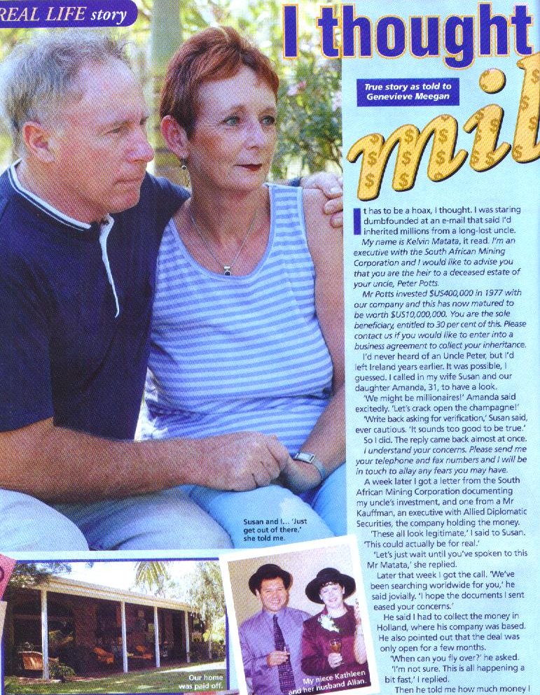 NIGERIAN SCAM : NEW ZEALAND COUPLE LOOSE $36,000!!