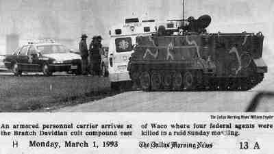 Between the days of February 28, 1993 and April 19th, 1993, approximately 80 men, women, and children living peacefully in their home near Waco, Texas, were killed by the combined efforts of the US Defense Department and other government paramilitary units: the US Treasury Department's Bureau of Alcohol, Tobacco, and Firearms (ATF), and the Federal Bureau of Investigation (FBI). The incident also claimed the lives of four ATF agents.